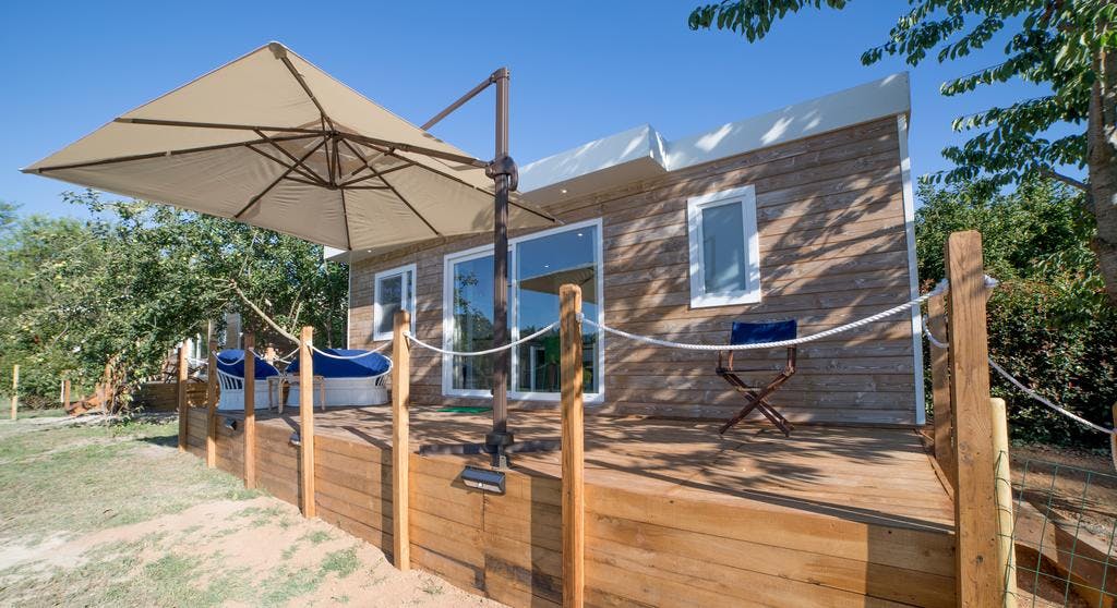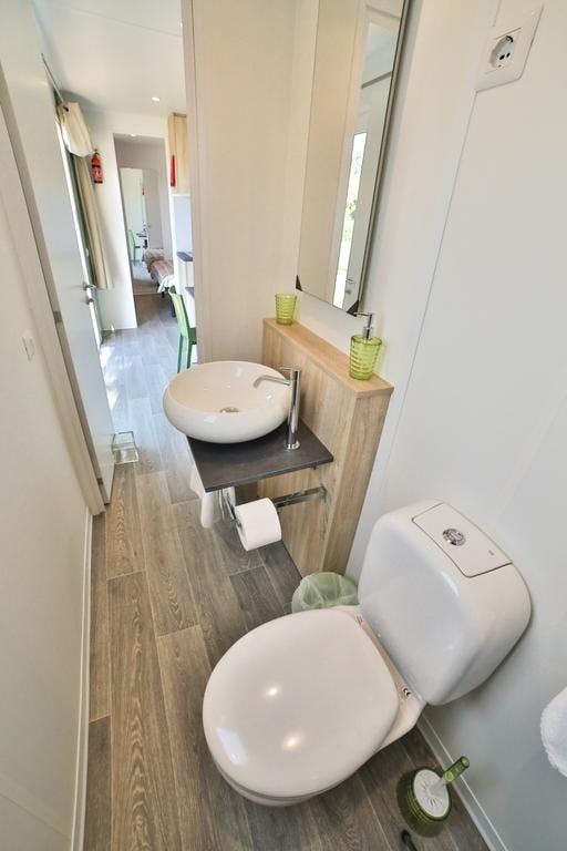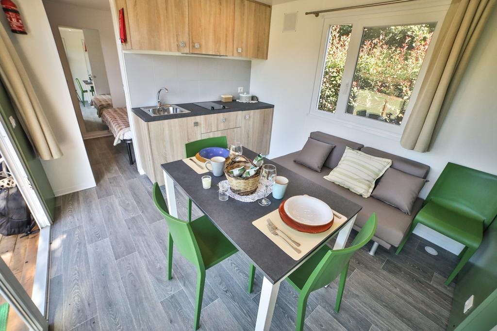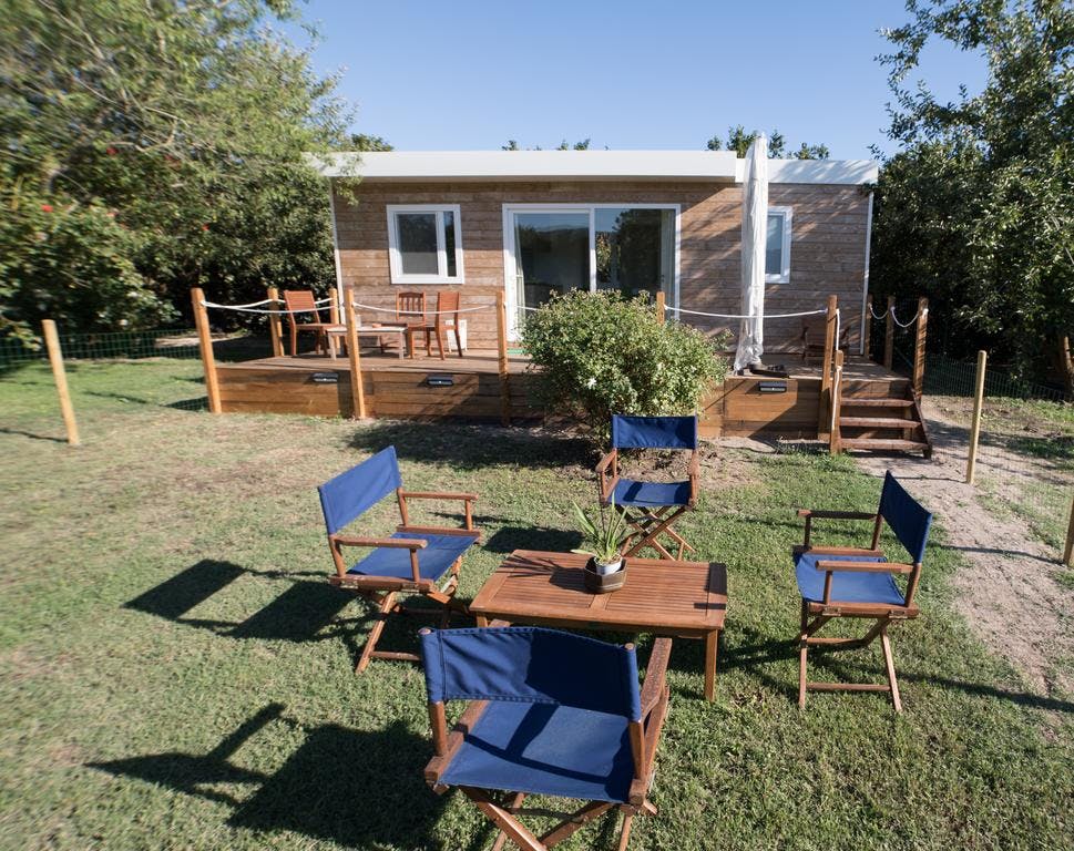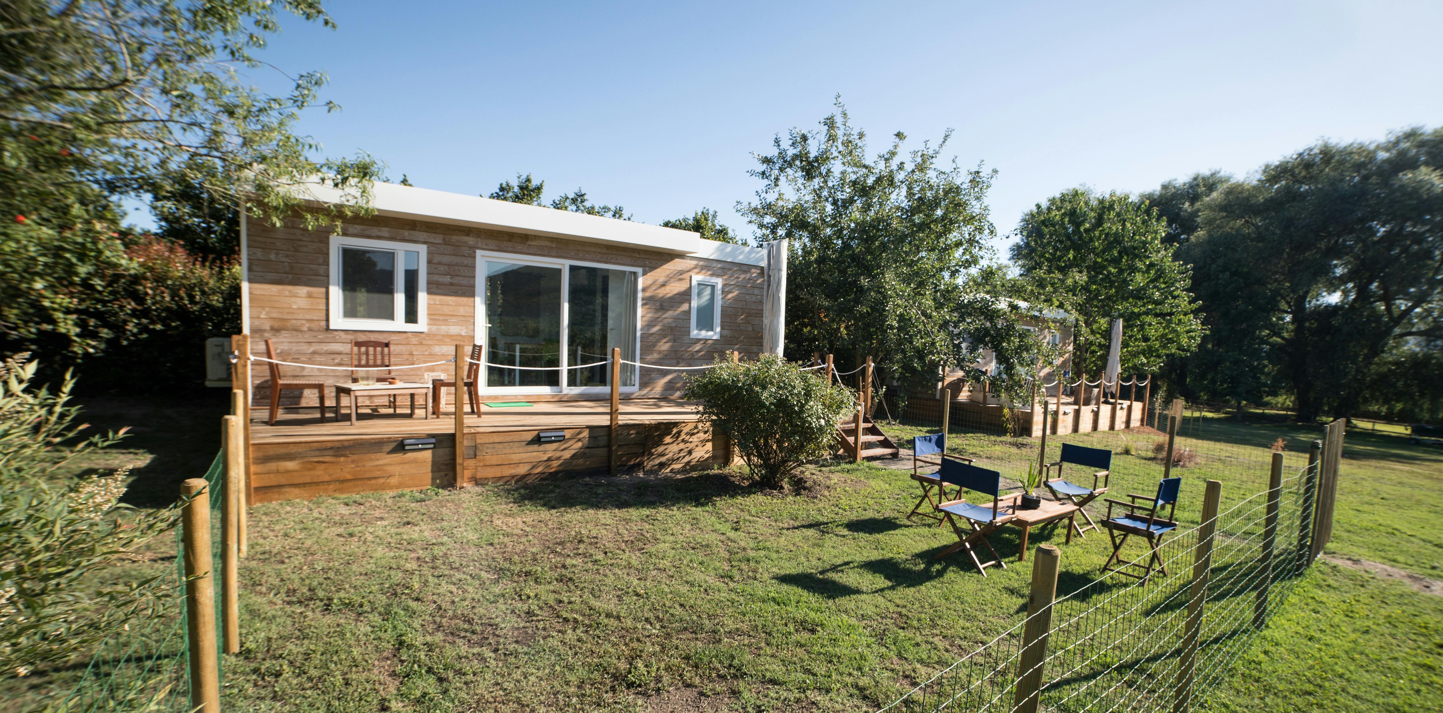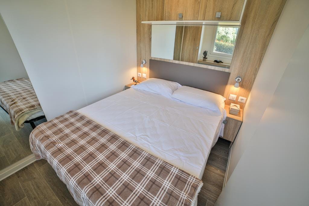 cottage with air-conditioning,wi fi, a kitchen, a bathroom, a double bedroom, a bedroom with two beds, terrace and private garden with lake view.The price mentioned is for the entire cottage up to 4 persons included.